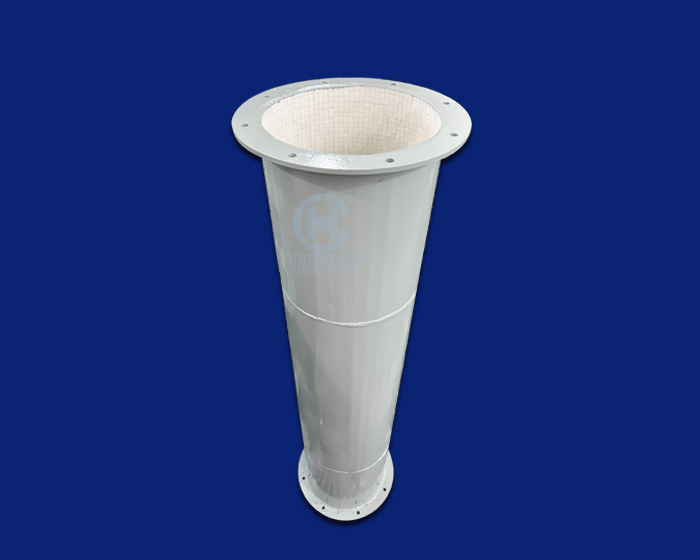 耐磨陶瓷彎頭可用于火電、冶金、鋼鐵、煤炭、水泥、石油、化工等行業(yè)氣力輸送系統(tǒng)彎頭及管道。